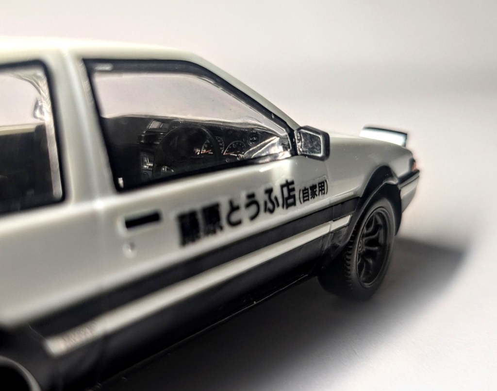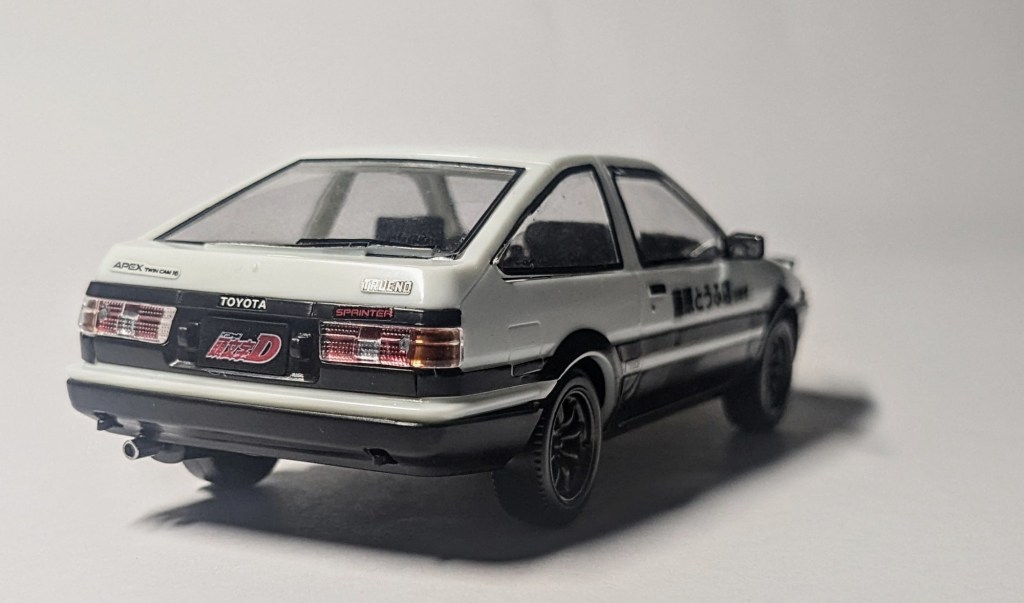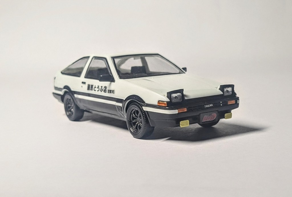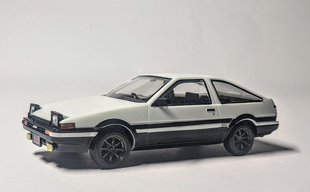 En mai 2024, j’ai eu la chance de pouvoir me rendre au Japon. Au delà d’avoir pu réaliser ce voyage ; qui est une sorte d’objectif pour tout enfant des années 80-90 et ayant grandi avec les animes ; j’en ai profité pour acquérir pas mal de maquettes, une de mes passions. Oui, vous connaissez peut-être les maquettes de Gundam, appelées gunpla. Mais il y a surtout un terme générique pour tout ce qui n’est pas du gunpla : plamo, la contraction de plastic model. Et parmi ces plamo, il y a les maquettes de voiture, dont celle de l’anime Initial D. Le véhicule du protagoniste, Takumi Fujiwara, connue sous le nom de hachiroku (ou Panda Trueno) fait partie de la pop culture. Au hasard de chalandise dans Tokyo, me voilà face à un paquet de cartons contenant la Panda trueno. Sans hésiter, je glissais un paquet dans mon panier…